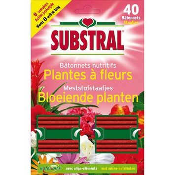 Chouchoutez vos plantes à fleurs avec les bâtonnets nutritifs de Substral. Les bâtonnets avec engrais contiennent des oligoéléments dont vos plantes profiteront très longtemps. Un produit unique pour les vrais fans de fleurs.