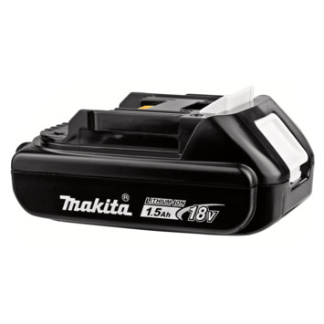 Cette batterie Makita BL1815N est équipée d'un indicateur LED. Il indique l'état de la batterie et la capacité du réservoir. 4 LEDs allumées = 75-100% 3 LEDs allumées = 50-75% 2 LEDs allumées = 25-50% 1 LED allumée = 0-25% Si la 1ère LED clignote, c'est le signal que la batterie doit être rechargée. Si les quatre témoins clignotent par paires, il se peut que la batterie soit défaillante.