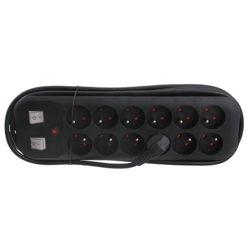 Bloc 12 prises Exin cordon 3m avec 2 interrupteurs noir