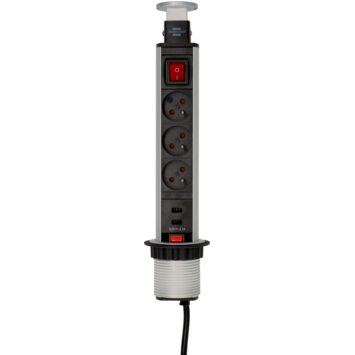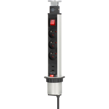 Bloc à 3 prises et 2 ports USB Brennenstuhl Tower-Power avec câble 2 m alu/noir