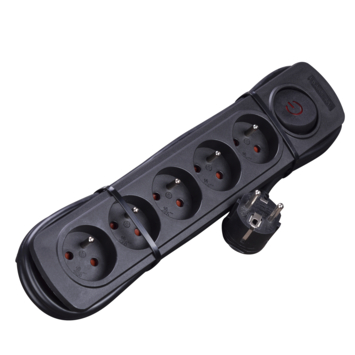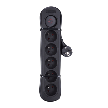 Bloc multiprises 5 prises avec interrupteur et fiche plate Handson noir 1,5 m
