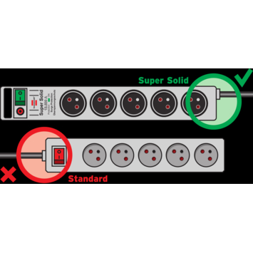 Prolongateur multiprise Super-Solid avec parasurtenseur 13.500 A Socle très stable, protège les appareils électriques de valeur contre les surtensions dangereuses. Protège les appareils connectés contre les surtensions jusqu'à maximum 13.500 A. Multiprise très solide en polycarbonate résistant. Particularité : câble à l'opposé de l'interrupteur pour une utilisation facilitée. L'écartement entre les prises de courant permet le branchement de chargeurs.