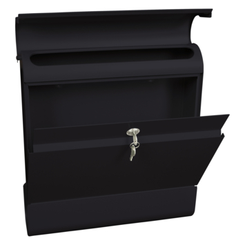 La boîte aux lettres murale V-Part Armilan en acier galvanisé thermolaqué anthracite et équipée d'une serrure à cylindre avec 2 clés. L'ouverture d'insertion (32,5 x 3 cm) se situe sous le rabat, qui protège le courrier. Avec un compartiment à journaux pratique au fond de la boîte aux lettres.