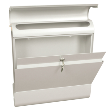 La boîte aux lettres murale V-Part Armilan en acier galvanisé thermolaqué blanc et équipée d'une serrure à cylindre avec 2 clés. L'ouverture d'insertion (32,5 x 3 cm) se situe sous le rabat, qui protège le courrier. Avec un compartiment à journaux pratique au fond de la boîte aux lettres.
