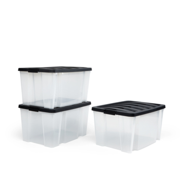 Les boîtes de rangement Handybox d’Iris Ohyama se distinguent par leur design robuste et fonctionnel. Ce lot inclut trois boîtes de 45 litres chacune. Les boîtes sont équipées d’un couvercle noir solide qui assure une fermeture sécurisée grâce aux clips pratiques. Les boîtes transparentes permettent de reconnaître facilement le contenu. De plus, elles sont à la fois emboîtables et empilables, ce qui permet de gagner de la place lorsqu’elles ne sont pas utilisées. Idéales pour ranger divers articles ménagers tels que des jouets, des vêtements, des chaussures et d’autres accessoires. Convient à différentes pièces comme le salon, la chambre, la cuisine, la salle de bain, le garage ou le bureau.
