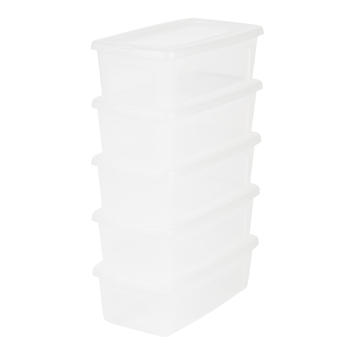 Iris Basic Clear Box est un ensemble de 3 boîtes de rangement transparentes tendance d’une capacité de 5 litres par boîte. Pratique pour ranger divers objets et les empiler de manière stable les uns sur les autres ou à l’intérieur les uns des autres. Vous avez encore besoin d’une taille plus grande ? Nous proposons également cette boîte emboîtable de 342 mm de long, 190 mm de large et 150 mm de haut avec une capacité de 11 et 30 litres. Bon à savoir : la boîte transparente modulaire IRIS est livrée avec des couvercles.