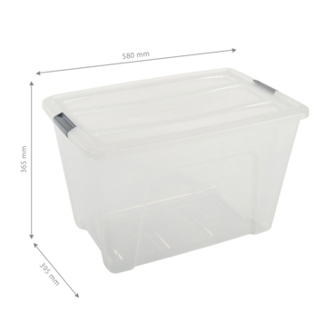La grande boîte de rangement Iris Click New Top Box est une boîte de rangement transparente pratique pour toutes sortes de choses. La boîte de 60 litres est très bien renforcée par une structure solide et peut être fermée avec 2 fermetures à clips. Les boîtes peuvent être empilées de manière stable et la conception de la boîte de rangement vous assure une prise en main pratique au fond. Cela permet de placer facilement la boîte à une certaine hauteur. Cette boîte Iris emboîtable mesure 395 mm de large, 580 mm de long et 365 mm de haut