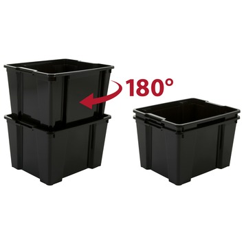 Cette boîte de rangement Handybox d’IRIS est fabriquée en plastique extra résistant et la capacité par boîte de rangement est de 30 litres. La boîte est emboîtable et vous pouvez facilement empiler la boîte sans couvercle si vous tournez la boîte à 180°. Cette boîte de rangement robuste, emboîtable et empilable peut être utilisée à de nombreuses fins. Disponible dans une variété de couleurs, y compris cette boîte de rangement noire. Astuce : vous pouvez acheter le couvercle de cette boîte de rangement Handybox séparément chez GAMMA.