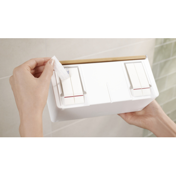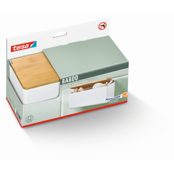 Découvrez la boîte murale tesa® Baboo de format moyen en plastique blanc avec séparateur flexible et couvercle en bambou. Une boîte de rangement pratique pour garder des objets tels que des cosmétiques, des bijoux ou des cotons-tiges organisés et accessibles. Montage sans perçage grâce au bandes adhésives tesa® Powerstrips Waterproof XL incluses pour une fixation étanche avec une puissance de maintien allant jusqu’à 3 kg. Elles sont faciles à enlever et sans résidus. La boîte peut ensuite se fixer à nouveau à l’aide des bandes de recharge tesa® Powerstrips Waterproof XL.