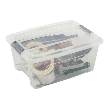 La boîte de rangement Iris Click New Top Box est une boîte de rangement transparente pratique pour toutes sortes de choses. La boîte de 15 litres est très bien renforcée par une structure solide et peut être fermée avec 2 fermetures à clip. De plus, les boîtes peuvent être empilées de manière stable. Le New Top Box emboîtable mesure 18,5 x 40 x 29,5 cm.
