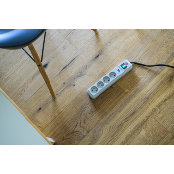 Bloc multiprise Eco-Line avec parasurtenseur 13.500A 4 prises gris clair 1,5m H05VV-F 3G1,5 *FR* * Prises de courant 2P+T 16A/230V~. * Protège les appareils connectés contre les surtensions jusqu'à maximum 13.500 A. * Protège efficacement vos appareils électriques en cas de pics de tension ou des effets néfastes des coups de foudre indirects. * Prises orientées à 45° pour un branchement optimal de fiches coudées. * Bloc ménager en matière isolante moulée. * Voyant indicateur de protection active. * Interrupteur marche-arrêt à voyant lumineux.