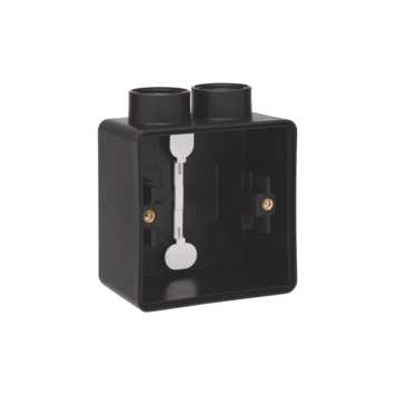 Les prises, interrupteurs et boutons de Niko combinent fonctionnalité, qualité et design. La marque vous propose tout ce dont vous avez besoin pour la finition de vos installations électriques, comme par exemple ce boîtier simple avec 2 entrées de couleur noire de la série Hydro55+ étanche.
