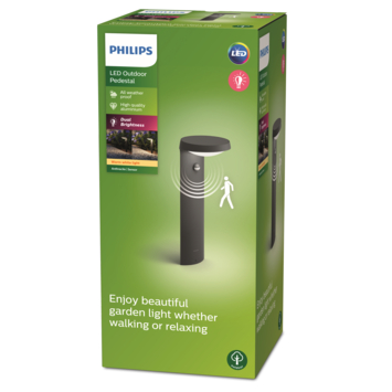 La borne lumineuse Philips Tyla LED avec détecteur de mouvement intégré émet automatiquement une lumière blanc chaud lorsqu'il y a du mouvement le soir et reste éteinte pendant la journée. Idéal pour éclairer votre allée de jardin. Cette lampe sur pied de couleur anthracite est en fonte d'aluminium et est résistante aux intempéries (IP44). Profitez d'un éclairage extérieur confortable avec cette lampe LED Philips pratique.