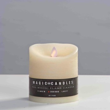 Ambiance garantie avec cette bougie Magic Flame. Cette bougie couleur crème à un diamètre de 7,5 cm pour une hauteur de 12,5 cm et est faite de véritable cire de sorte qu’il est pratiquement impossible de la distinguer d’une vraie bougie. La flamme en revanche est une petite ampoule LED, tout à l’avantage de la sécurité en présence d’enfants et d’animaux domestiques. Elle fonctionne grâce à 2 piles AA (non fournies) et intègre une minuterie. Une fois allumée, la bougie brûle pendant 6 heures. Elle s’éteint ensuite automatiquement pour se rallumer 18 heures plus tard pour brûler pendant 6 heures. Si vous le souhaitez, vous pouvez aussi allumer et éteindre la bougie manuellement.