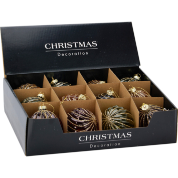Boule de Noël en verre avec relief rouge-ornge-vert Ø 8 cm la pièce1.12