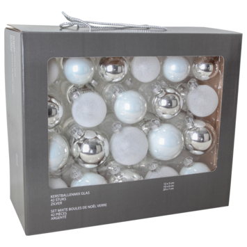 Décorez votre sapin de Noël avec nos belles boules de Noël de notre vaste gamme. Ce mélange de boules de Noël de couleur argent se compose de 42 pièces. Toutes les balles ne sont pas identiques, ce qui la rend idéale pour faire des combinaisons amusantes. Les boules de Noël sont en verre. Également disponible dans d'autres couleurs.