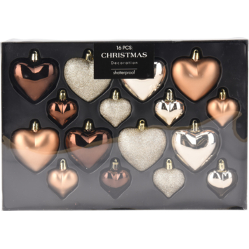 Le lot de suspensions de Noël en forme de cœur en plastique, couleur marron, or et blanc, apporte de la variété et de l'élégance à votre sapin. Le lot se compose de cœurs en trois couleurs – marron, or et blanc – et de deux tailles différentes : 6,5 cm et 4,5 cm, 8 pièces de chaque taille. Étant en plastique, les suspensions sont légères et faciles à accrocher, tout en ayant un aspect luxueux. Parfait pour remplir votre sapin et créer une harmonie visuelle. Un choix pratique et élégant pour les jours de fête.