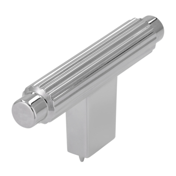 Bouton design en chrome brillant, avec nervures. Un beau bouton par exemple pour la cuisine ou la salle de bain pour donner un aspect frais et moderne.