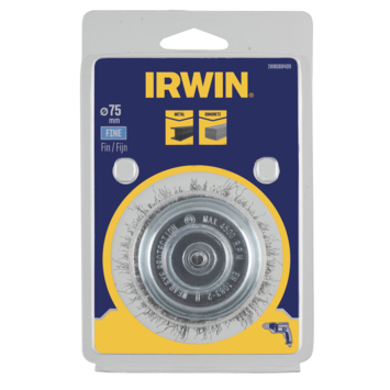 La brosse boisseau métallique IRWIN IW8088409 peut être fixée à une perceuse pour le ponçage grossier. Convient pour le ponçage du métal. Idéal pour poncer les coins difficiles d'accès. Le fil d'acier de la brosse en forme de coupe a une structure fine. Diamètre : 75 mm.