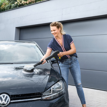 La brosse de lavage rotative avec accessoire supplémentaire Universal est équipée d'un levier de déverrouillage pour changer rapidement et facilement l'accessoire sans entrer en contact avec la saleté. Et grâce au capot transparent, vous avez une excellente vue sur les travaux de nettoyage. La brosse du nettoyeur haute pression est idéale pour le nettoyage en profondeur de diverses surfaces telles que la peinture, le verre et le plastique. Si nécessaire, un produit de nettoyage peut être appliqué via le nettoyeur haute pression. Grâce au nouveau moteur, le WB 120 a plus de puissance que les versions précédentes - pour un nettoyage efficace et en profondeur. La brosse de lavage rotative convient à tous les nettoyeurs haute pression Kärcher des classes K 2 à K 7.