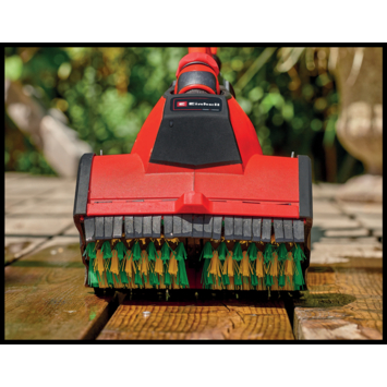 La brosse douce Einhell pour surfaces en bois et gazons synthétiques est un accessoire pratique pour le nettoyeur multi-surfaces 18 V Einhell Picobella. La brosse Soft en nylon est idéale pour nettoyer le bois et le gazon synthétique, ainsi que les caillebotis de terrasse à profilés en bois tendre et dur et en bois composite. Les poils doux nettoient et redressent les fibres des gazons synthétiques qui paraissent alors comme neufs. La brosse Soft ne convient pas aux surfaces vitrifiées. La brosse d'un diamètre de 115 mm a une largeur utile de 195 mm. Vous trouverez dans notre assortiment d'autres brosses compatibles avec le nettoyeur Picobella.