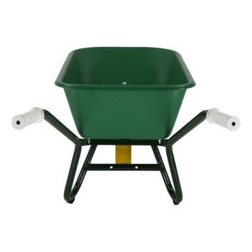 La brouette TK100 verte de Altrad Fort est une grande brouette indispensable pour le jardinier ou le maçon. La brouette pratique a une benne en synthétique d'une capacité de 100 litres, grâce à laquelle de grandes quantités de matériaux peuvent être transportées. Les poignées de sécurité et l'axe de renfort soudé rendent la brouette solide, stable et sûre. La brouette peut s'utiliser sur les terrains les plus difficiles : la roue jaune increvable surmonte les obstacles sans risque de crevaison.