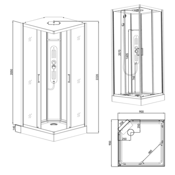 Profitez d'une douche merveilleusement relaxante après une longue journée. La douche de tête intégrée de pas moins de 25 x 25 cm offre un jet chaud généreux, ce qui en fait un lieu de séjour agréable. Les jets d'hydromassage du panneau latéral procurent un effet revigorant supplémentaire en massant votre peau et vos muscles. La douchette ronde est équipée de 3 réglages supplémentaires. La douche de tête et la douchette sont faciles à utiliser grâce aux boutons situés sur le panneau latéral de la cabine de douche.