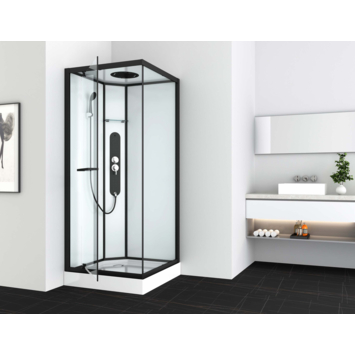 Cabine de douche complète Allibert La Paz 90x90 cm translucide/noir