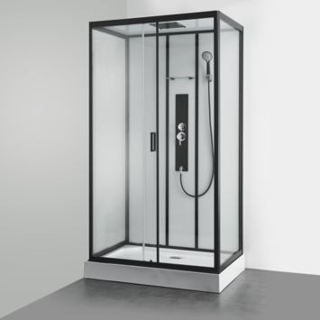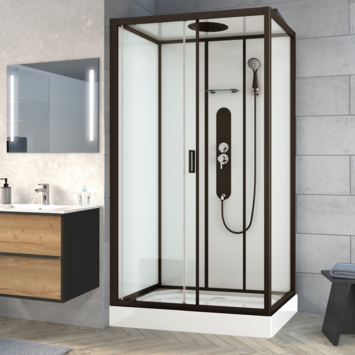 Cabine de douche complète Allibert Uyuni modèle d'angle 80x120x225 cm translucide/noir
