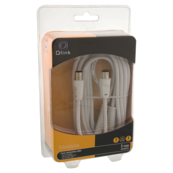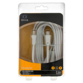 Avec le câble de connexion Q-link, vous obtenez un signal TV et radio clair et sans interférence de votre prise coaxiale vers votre téléviseur ou votre boîtier multimédia. Le câble de connexion est blindé contre le signal d'interférence 75dB. Cela rend le cordon adapté aux téléviseurs, TFT et LCD. Le câble de connexion d'une longueur totale de 5 mètres est également blindé avec un filtre 100 Hz, vous pouvez donc utiliser le câble pour un téléviseur 100 Hz. Un téléviseur avec un nombre de Hertz aussi élevé produit une image plus calme qui vibre moins. En bref, le câble de connexion Q-link garantit que vous pouvez également regarder une image sans interférence sur un téléviseur 100Hz.