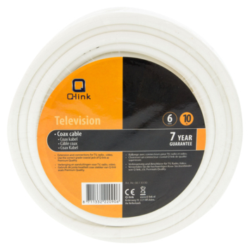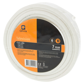 Avec le câble coaxial Q-link blindé, vous pouvez installer une installation d'antenne et connecter facilement le téléviseur ou le boîtier multimédia. Le câble coaxial est blindé, ce qui se traduit par un noyau plus épais et donc un transfert de signal optimal. La perte de signaux est considérablement réduite par le câble coaxial. Le câble d'une longueur de 10 mètres protège contre les signaux parasites de 75 dB. si vous souhaitez limiter encore plus la perte de signal, installez le câble coaxial blindé de Q-link avec des fiches blindées.