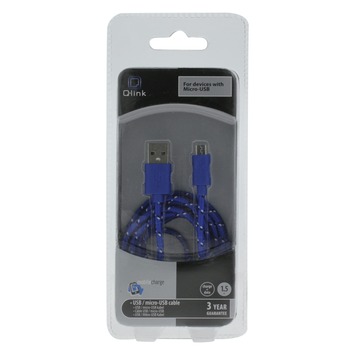Câble d'alimentation textile pour micro-USB Q-link 1,5 m bleu