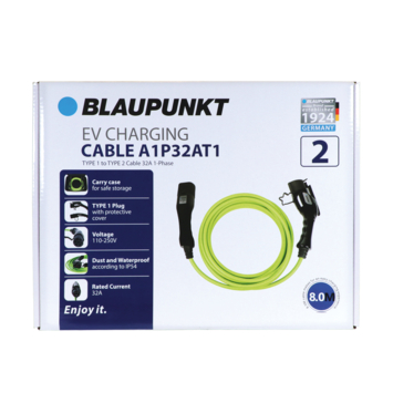 Blaupunkt propose une gamme de câbles de charge testés et certifiés, répondant à toutes les exigences de sécurité électrique. La construction robuste garantit que les produits peuvent être utilisés quotidiennement dans diverses conditions météorologiques. Câble de charge monophasé Blaupunkt pour véhicule électrique de type 1. Avec une capacité de 16 ampères, il charge en toute sécurité jusqu’à 3,7 kW. Les câbles de charge Blaupunkt sont conçus selon la classification IP54, ce qui les rend sûrs pour une utilisation en extérieur par tous les temps. La longueur totale de 8 mètres offre une flexibilité maximale. Un sac de transport pratique et protecteur est inclus.