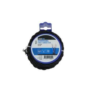 Ce câble décoratif a une gaine tressée noire autour de chacun des brins. Le cordon convient pour raccorder de l'éclairage et des appareils électroménagers légers de maximum 1380 Watts qui ne doivent pas être raccordés à la terre. Le cordon contient 2 fils multibrin de 0,75 mm² de section et a une longueur de 5 mètres.