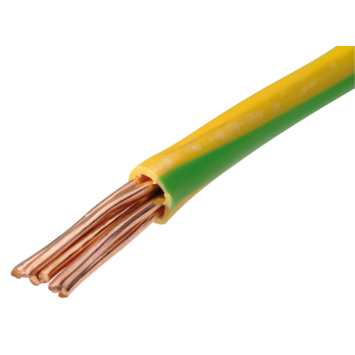 Ce fil VOB (H 07 V-U) jaune/vert de 16 mm² de section est le fil à raccorder à la prise de terre dans les installations électriques fixes domestiques et industrielles. La prise de terre permet d'évacuer le trop plein d'électricité lorsqu'un appareil est mal isolé. Elle protège ainsi de l'électrocution. Ce fil ne convient que pour installation dans un tube protecteur ou système similaire. Section 16 mm², coloris jaune/vert. Vendu par mètre courant.
