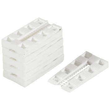 La cale de comptage GAMMA de 8 mm convient pour l'alignement et le remplissage de constructions. Par exemple, vous pouvez utiliser les constructions en coin pour effectuer des ajustements précis avant la confirmation finale. Avec la cale de réglage de 8 mm, vous pouvez également régler des meubles, des machines et d'autres objets. Par exemple, lorsqu'ils ne sont pas complètement droits. La cale GAMMA d'une épaisseur de 8 mm est également disponible en cale d'une épaisseur de 15 mm. De plus, la gamme propose des cales et un jeu de cales avec des cales de 2mm, 3mm, 4mm et 5mm.