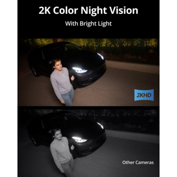 visionnez la diffusion en direct et les images en 2K HD avec vision nocturne couleur, pour ne jamais manquer le moindre détail. La caméra murale filaire eufy a un grand capteur de caméra pour voir les visiteurs de la tête aux pieds et surveiller votre voiture garée, par exemple.