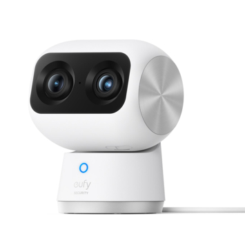 L'eufy Security Indoor Cam S350 muni d'une double caméra est une caméra de sécurité résolution UHD 4K avec Zoom 8× et PTZ 360°, idéale comme moniteur bébé/caméra pour animaux de compagnie/sécurité domestique.