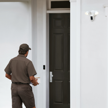 Dès que votre Floodlight Cam détecte un mouvement, vous recevez une notification sur votre téléphone, tablette, ordinateur portable et/ou ordinateur. La caméra détecte automatiquement les mouvements et démarre automatiquement l'enregistrement. Vous pouvez afficher les images en direct lorsque vous recevez une alerte de mouvement. Comme les plus célèbres sonnettes vidéo Ring, la Ring Floodlight Cam dispose de haut-parleurs intégrés et d'un microphone pour une communication bidirectionnelle avec les visiteurs. Vous pouvez même faire retentir la sirène de 110 dB et activer l'alarme, afin que tout le monde dans la zone entende que quelque chose se passe. Vous pouvez utiliser cette caméra de sécurité intelligente via l'application Ring.