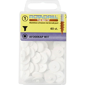 Ces caches blancs Rotadrill® sont destinés à recouvrir la tête de vis des vis universelles à entraînement torx. Les capuchons ronds sont destinés aux têtes de vis T15. Vous pouvez facilement presser les capuchons sur la tête de vis sans avoir besoin d'outils. En bref : un petit effort pour finir complètement votre travail. En recouvrant les têtes de vis, les vis sont totalement invisibles. Ces capuchons blancs sont particulièrement adaptés pour une utilisation sur des matériaux blancs. Un paquet contient 40 pièces de capuchons de protection.