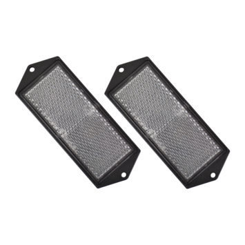 Jeu de 2 catadioptres Carpoint blancs pour remorque. Montage à l'avant. Ces réflecteurs en plastique sont homologués CE. Dimensions 104x40 mm. Faciles à visser. Livrés par 2, emballage blister.