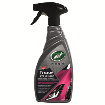 Turtle Wax Hybrid Solutions Ceramic 3-in-1 Detailer offre un nettoyage sans eau qui intensifie la brillance et ajoute une protection à la cire céramique. Utilisez-le régulièrement pour améliorer la brillance ou pour maintenir la laque entre les lavages.