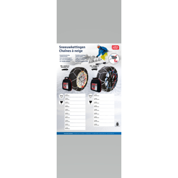 La chaîne à neige KNS-50 Carpoint est composée de maillons de chaîne trempés de 9 mm et convient aux voitures (légères). Grâce à la traverse spéciale, cette chaîne a une bonne adhérence sur la chaussée dans des conditions climatiques hivernales. Les chaînes à neige sont fournies dans un ensemble de deux. Montez toujours les chaînes à neige sur les roues motrices Pour les voitures à quatre roues motrices, montez la chaîne à neige sur les roues avant. La chaîne à neige Carpoint est facile à assembler sans déplacer la voiture, même s'il y a peu d'espace entre le pneu et le passage de roue. Le système de tension garantit que la chaîne est facilement au bon endroit. Vérifiez la chaîne au bout d'environ 100 mètres et serrez-la si nécessaire.