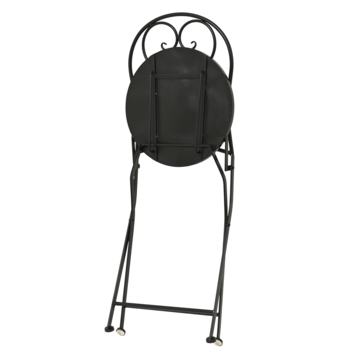 Sa structure en métal avec revêtement en poudre noire résiste aux conditions extérieures courantes. L’assise décorée d’un motif mosaïque olive apporte une touche distinctive tout en offrant une bonne stabilité. Grâce à son design pliable, la chaise se range et se déplace aisément, un atout idéal pour les petits espaces.