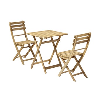 L'ensemble bistro Rialto comprend une table d'appoint carrée et 2 chaises pliantes en bois massif de couleur naturelle, blanche ou taupe. Vous pouvez acheter chaque élément séparément, pour composer l'ensemble de vos rêves. Conseil : idéal pour un balcon ou une petite terrasse.