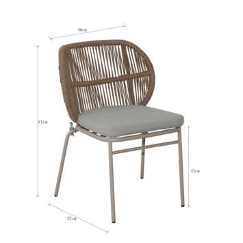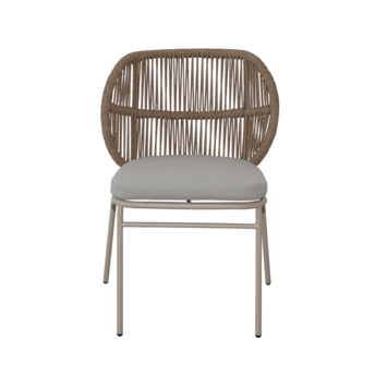 La chaise de jardin Amélie, en métal beige, offre un confort idéal pour une utilisation en extérieur, que ce soit autour d’une table, sur la terrasse ou simplement installée dans le jardin.