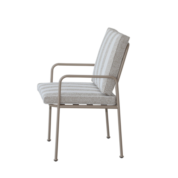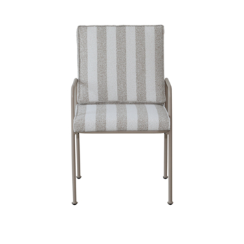 La structure beige s’accorde parfaitement avec le coussin beige à rayures blanches. La housse amovible et lavable facilite l’entretien au fil de la saison.