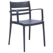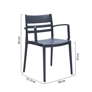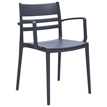 Stevige brede stoel. Ziet er duurzaam uit. Stapelbaar en moderne strakke uiterlijk