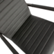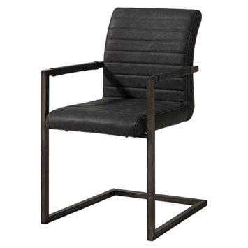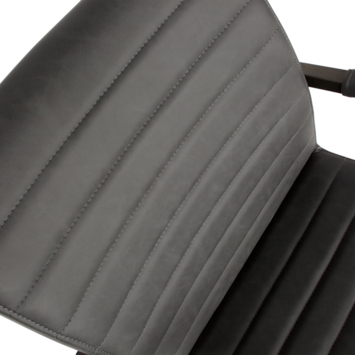 Bas est une chaise de salle à manger moderne dont l'assise est recouverte d'un tissu en cuir PU vintage. Le siège a une structure nervurée cousue. La structure de la chaise est en métal et recouverte d'un revêtement en poudre noire.