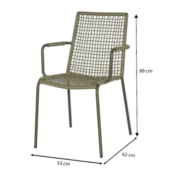 La chaise d’extérieur empilable vert olive Palermo est un choix idéal pour ceux qui recherchent une chaise élégante et confortable pour le jardin ou la terrasse. Avec une hauteur d'assise de 45,5 cm et une largeur de 53 cm, elle offre une expérience d'assise confortable. Le cadre métallique noir a une apparence moderne et raffinée, qui s'adapte parfaitement à divers styles de jardin.